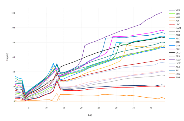 【ベルギーGP】ラップタイムとギャップ