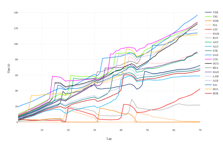 【ハンガリーGP】ラップタイムとギャップ