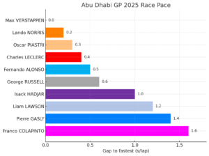 タイヤ・燃料・ダーティエアや全力で走る必要性などの諸条件を考慮に入れ、レース全体でのペースの力関係について、定量的にわかる範囲で分析を行った。 今回の分析は管理人Takumiのディレクションと監修の元、ChatGPT … 続きを読む 2025年アブダビGP レースペース分析