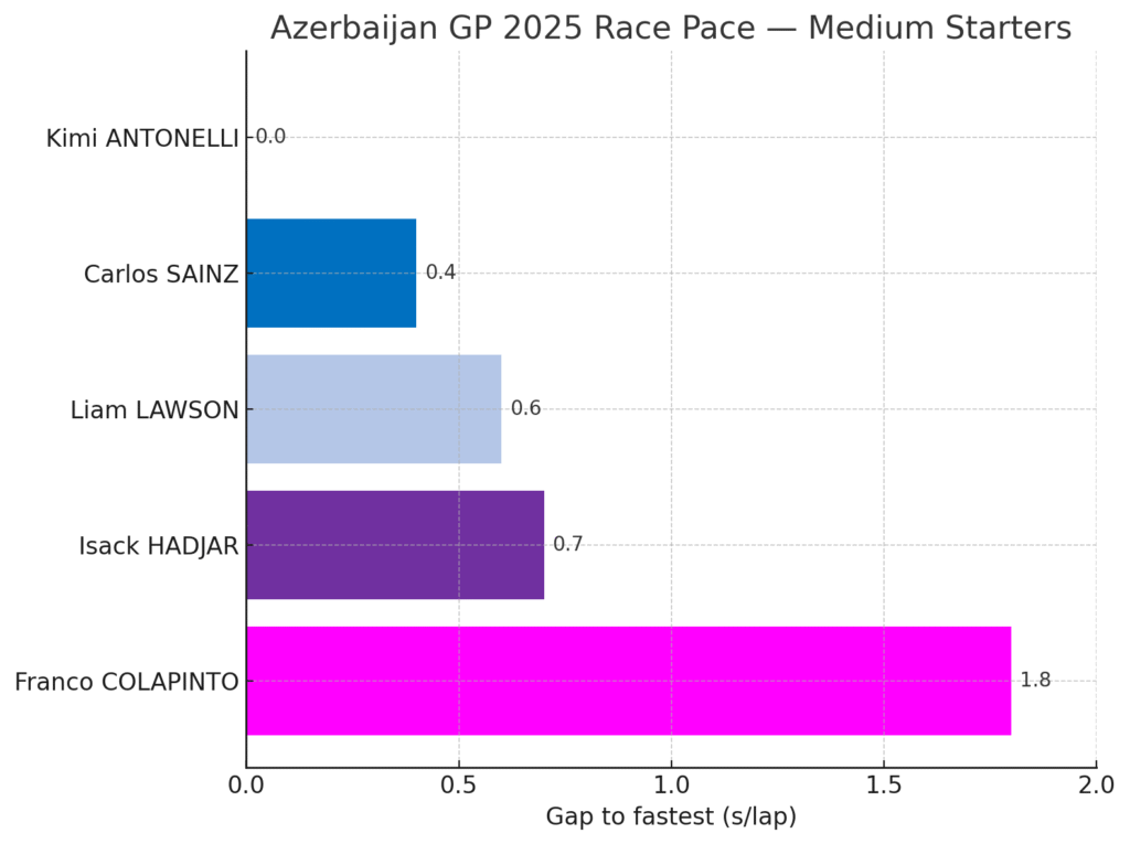 • また、クリア・ダーティエアやスティントの長さ、プッシュするインセンティブなどのレース文脈も考慮している。また、スティントの始めに飛ばした際に後のペースに与える悪影響、ゆっくり入った場合の好影響についても加味した。定量的に導出できないドライバーについては結論を出さず、信頼できる数字のみを公開する方針としている。