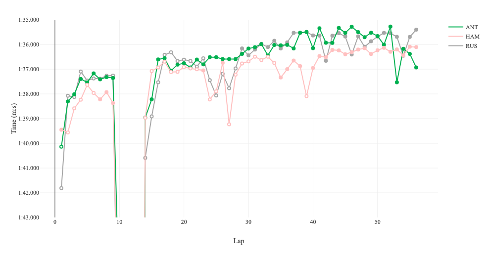 図1 アントネッリ、ラッセル、ハミルトンのレースペース